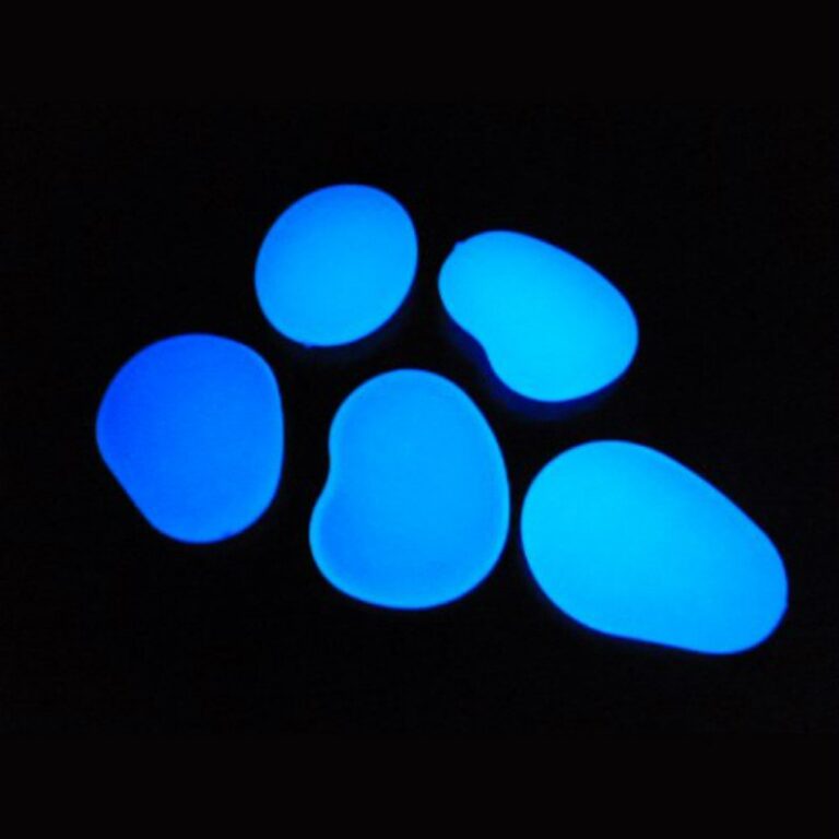 Questi sassi fluorescenti fosforescenti in plastica blu rappresentano una soluzione decorativa versatile e originale per ambienti interni ed esterni. Durante il giorno appaiono bianchi, ma una volta caricati con luce naturale, artificiale o UV, si trasformano in punti luminosi di un intenso blu al calar del sole. Grazie al materiale plastico resistente e non tossico, sono ideali per essere utilizzati in contesti sicuri come giardini, acquari o fontane, senza alcun rischio per bambini o animali.